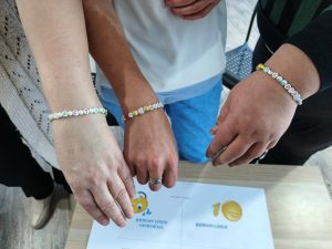 На память о сегодняшней встрече каждый сделал себе браслет-оберег с зашифрованным посланием о самом дорогом, что есть у каждого из нас. Ведь у каждого своё счастье и называется оно по-разному.