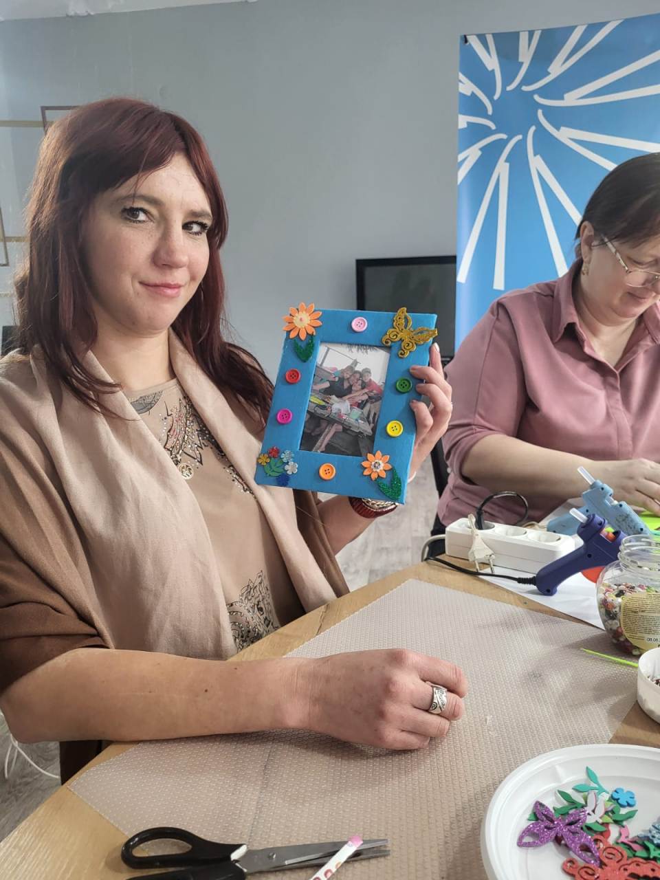 Закончилась встреча изготовлением рамки для семейной фотографии, хранящей счастливые моменты жизни, тепло семьи.