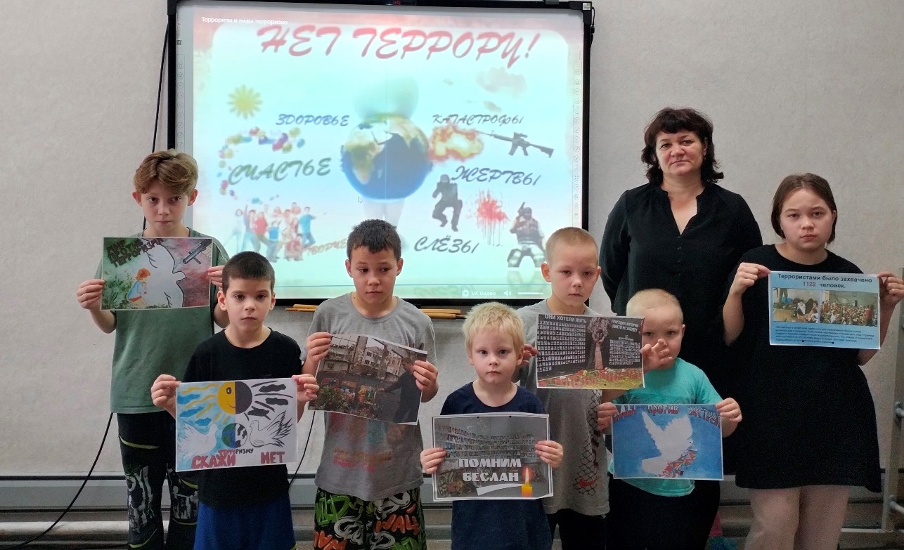 Воспитатель при помощи видео-презентации рассказала, что такое терроризм, каковы его последствия, какие возможные способы защиты от него существуют, как правильно поступить в чрезвычайной ситуации, чтобы спасти собственную жизнь и не помешать работникам правоохранительных служб провести операцию по освобождению заложников.