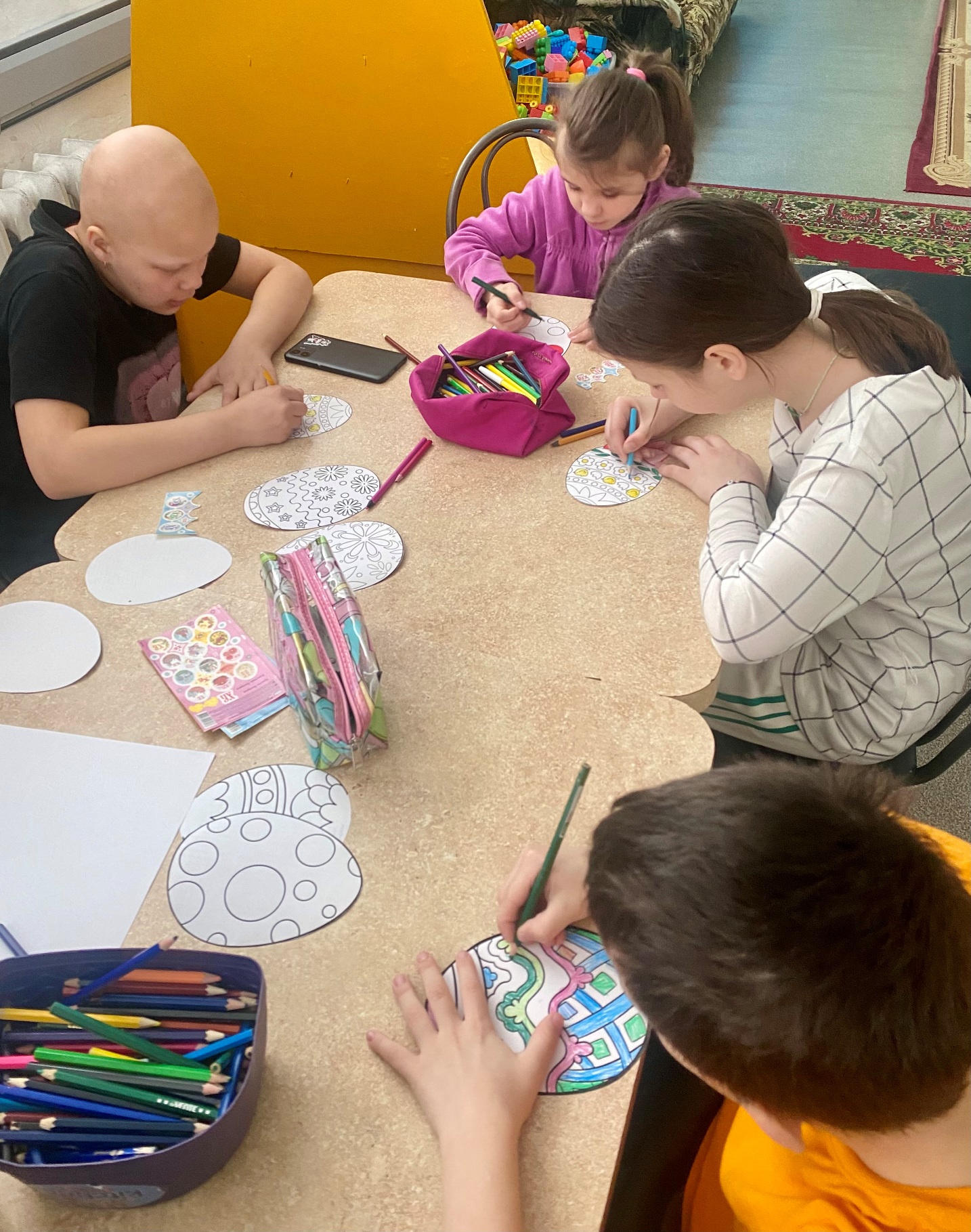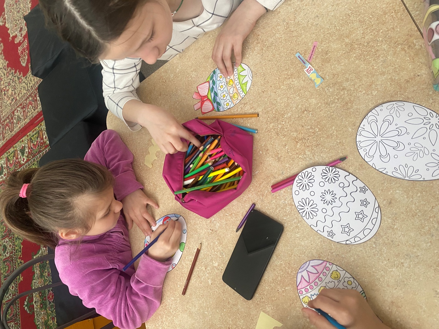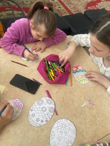 Накануне праздника Светлой Пасхи для воспитанников прошел час творчества «Раскрась пасхальное яйцо».